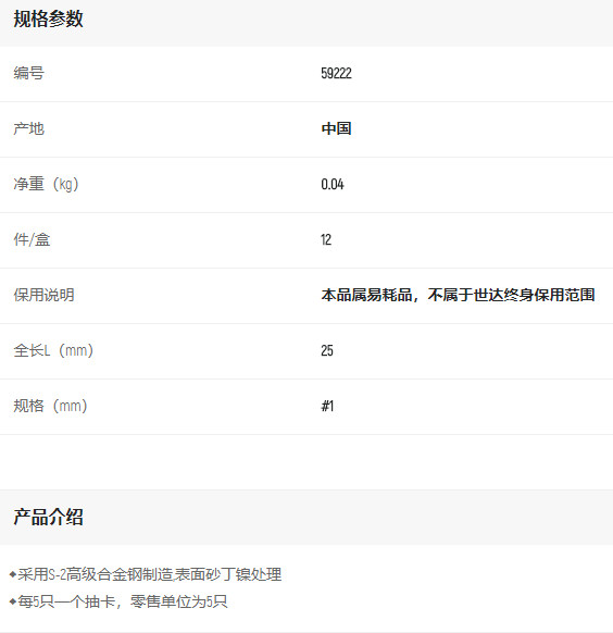產品名字:世達5件套6.3mm系列25mm長十字旋具頭1#