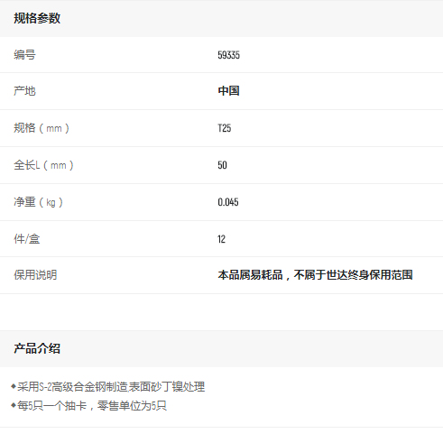 產(chǎn)品名字:世達5件6.3mm系列50mm旋具頭T25