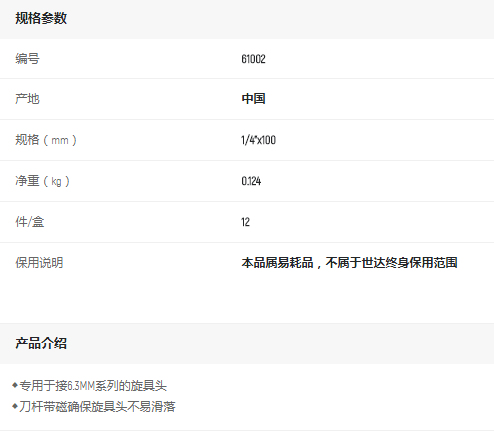 首頁>產品中心>螺絲批>旋具頭>世達旋具頭旋柄1/4*100mm