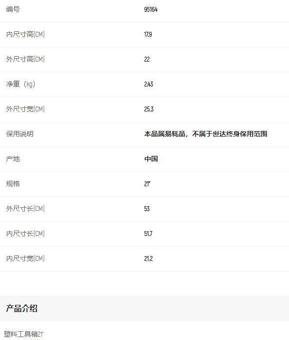 產(chǎn)品名字:世達(dá)塑料工具箱21寸