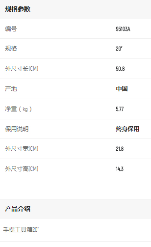 首頁>產(chǎn)品中心>工具車及箱包>工具箱>世達手提式工具箱20寸