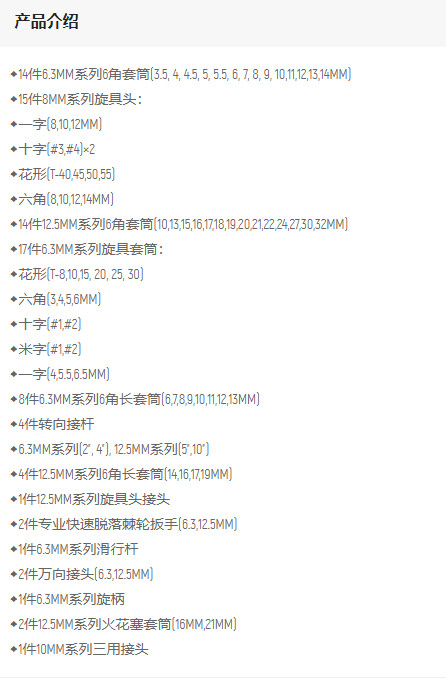 首頁>產(chǎn)品中心>扳手、手用套筒>套筒組套>世達(dá)86件6.3*12.5mm系列套筒組套