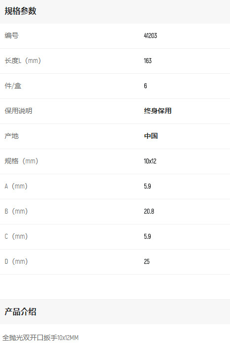首頁>產(chǎn)品中心>扳手、手用套筒>開口扳手>世達(dá)光面開口扳手10*12mm