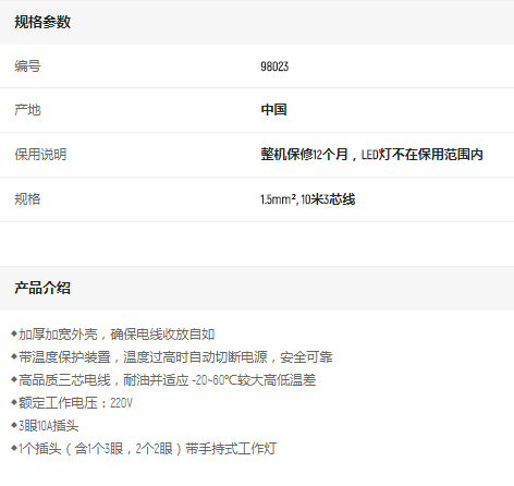 產(chǎn)品名字:世達帶燈三芯繞線盤10M