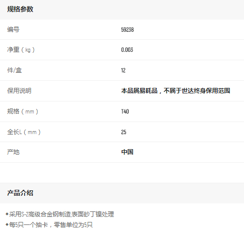 產(chǎn)品名字:世達5件6.3mm系列長花形旋頭T40