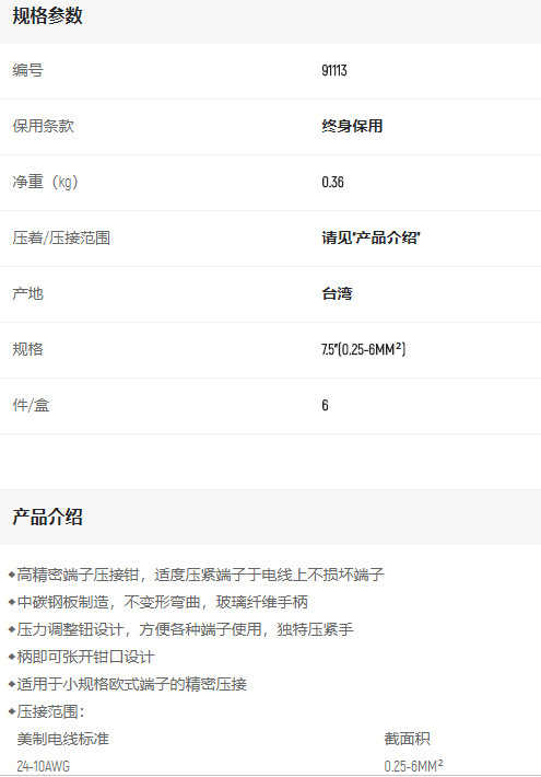 產(chǎn)品名字:世達(dá)精密歐式端子壓接鉗7.5寸(0.25-6mm平方)