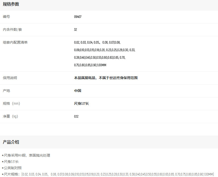 產(chǎn)品名字:世達(dá)32件公英制塞尺0.02-1.00mm