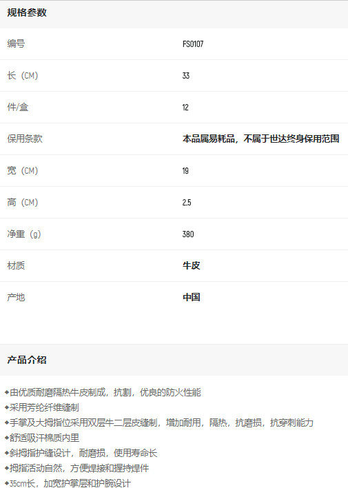 產(chǎn)品名字:世達斜指焊接手套L