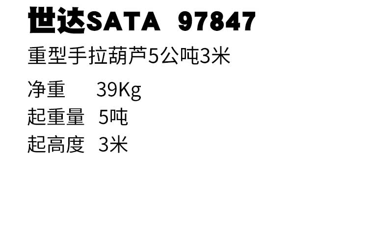 產(chǎn)品名字:世達重型手拉葫蘆5公噸3米