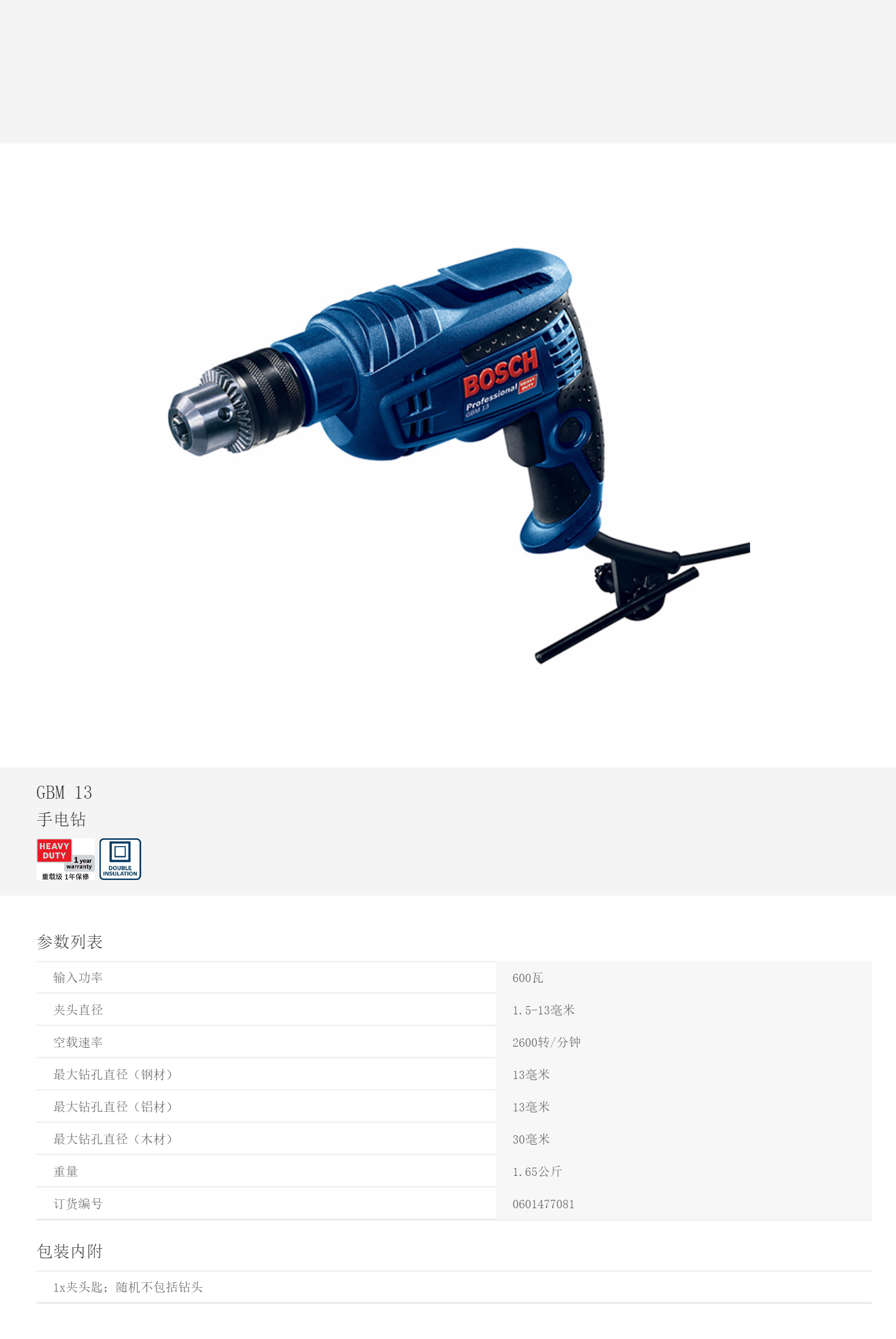 產(chǎn)品名字:博世手電鉆GBM13