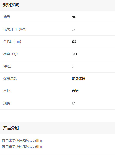 產(chǎn)品名字:世達(dá)圓口快速釋放大力鉗10寸
