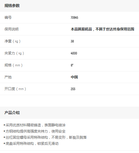 產(chǎn)品名字:世達重型方鋼臺虎鉗8寸
