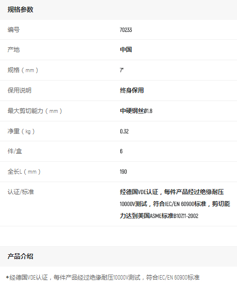 產(chǎn)品名字:世達VDE絕緣斜口鉗7寸