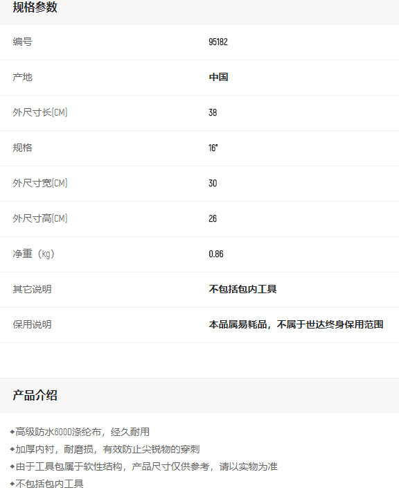 首頁(yè)>產(chǎn)品中心>工具車及箱包>工具包>世達(dá)工具包16寸