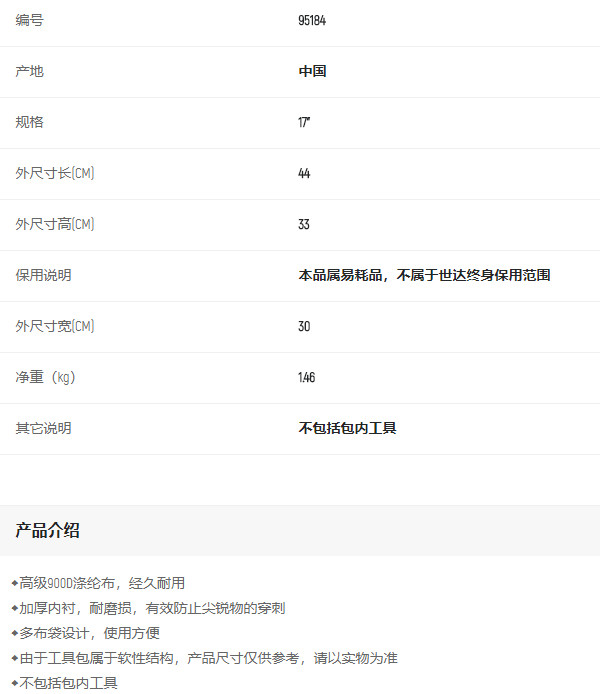產(chǎn)品名字:世達(dá)工具包17寸