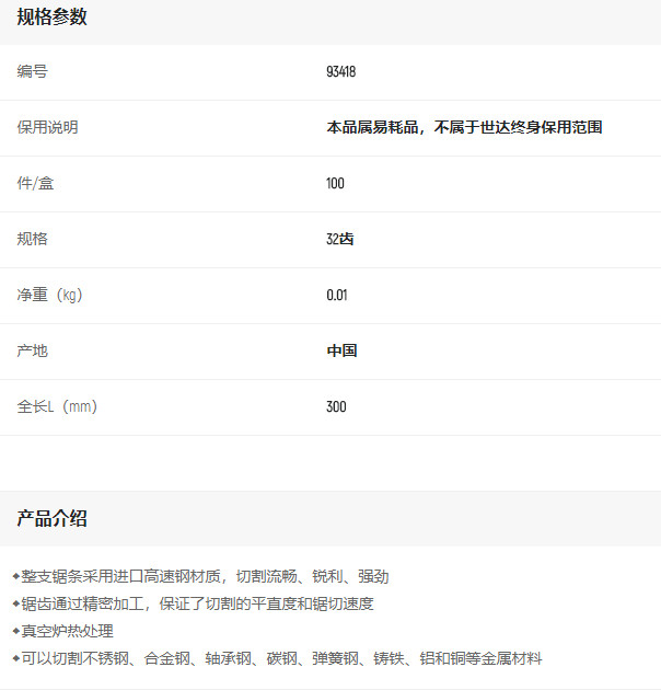 產品名字:世達12寸高速鋼鋸條32T