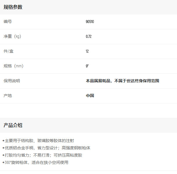 產(chǎn)品名字:世達(dá)硅膠槍9寸