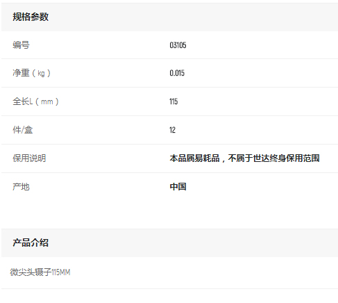 產(chǎn)品名字:世達微尖頭鑷子115mm