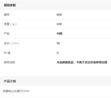 產(chǎn)品名字:世達(dá)防靜電尖頭鑷子
