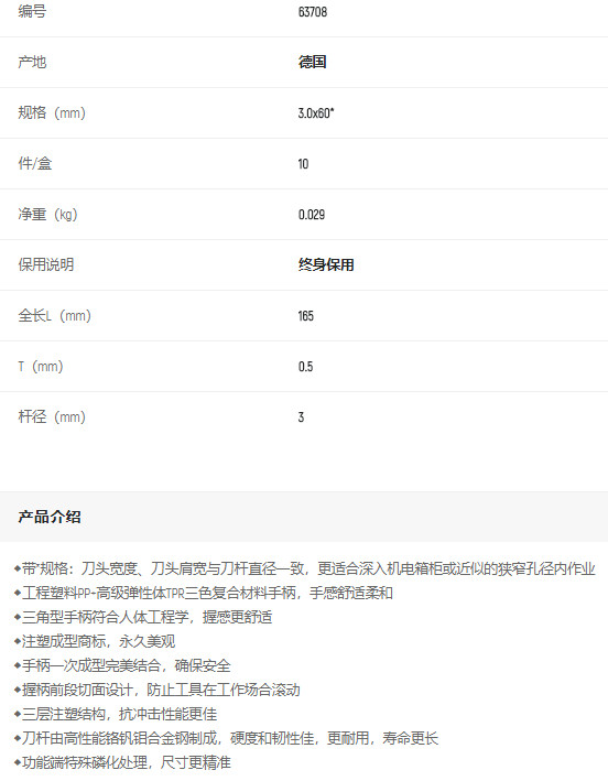 首頁>產(chǎn)品中心>螺絲批>一字螺絲批>世達G系列一字批3*60mm