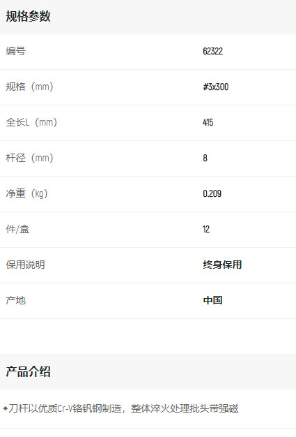 首頁>產(chǎn)品中心>螺絲批>十字螺絲批>世達A系列十字批#3*300mm