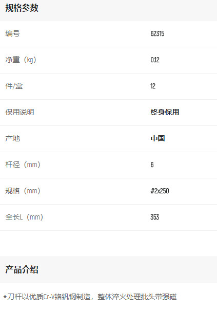 首頁>產(chǎn)品中心>螺絲批>十字螺絲批>世達A系列十字批#2*250