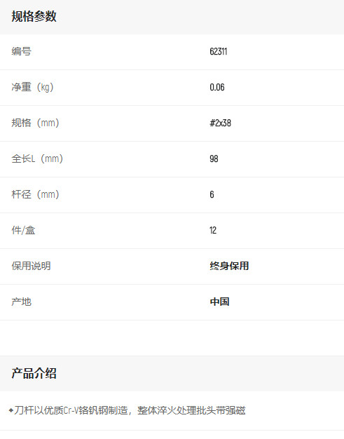 產(chǎn)品名字:世達A系列十字批#2x38mm