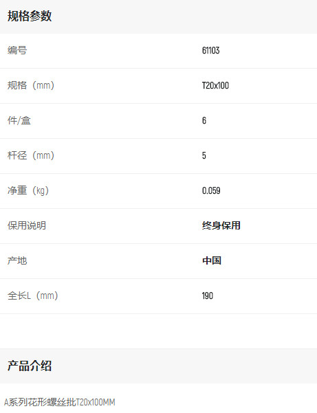 首頁(yè)>產(chǎn)品中心>螺絲批>花形螺絲批>世達(dá)花形螺絲批T20*100mm